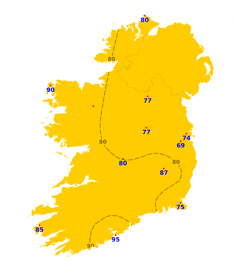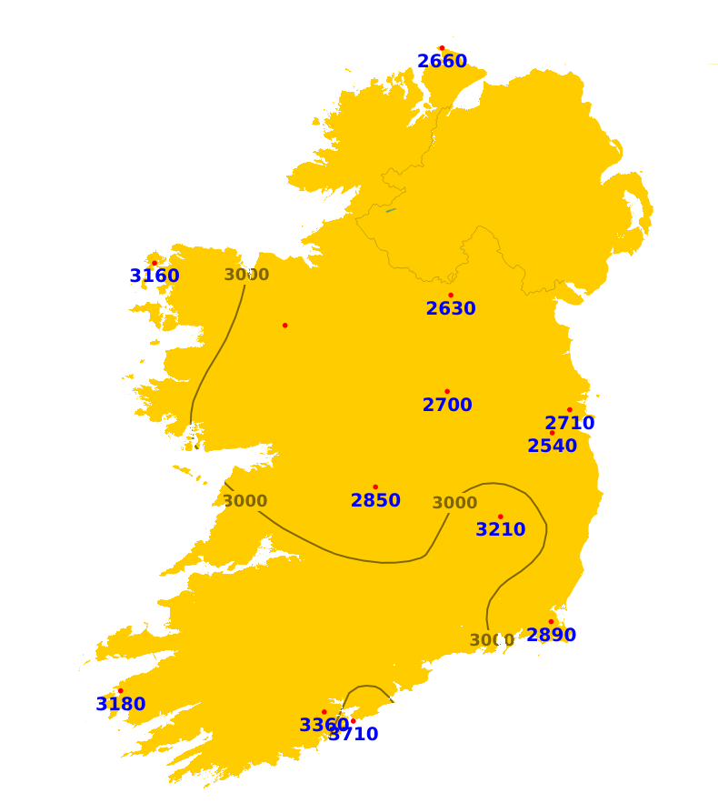 In the last week, sunshine amounts have generally been below average. It was brightest in the south with 17.8 hours of sunshine recorded at Cork Airport (98% of the norm) The east and north were duller, with 9.4 hours recorded at Casement Aerodrome, Co. Dublin (51% of average). While there will be sunshine at times this coming week, it will be mostly unsettled with sunshine amounts likely to be slightly below average as a result.