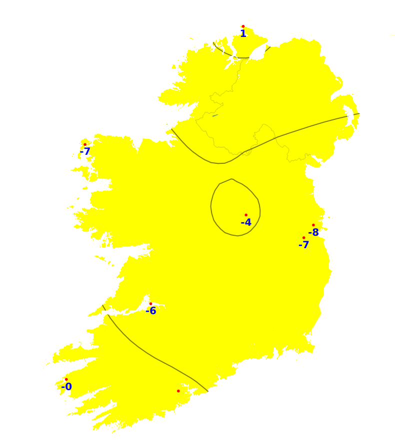 Sunshine amounts over the past week were close to or above normal at most stations, ranging from 881% of average at Belmullet to 124% at Roches Point. The highest sunshine total was 28.5 hours at Johnstown Castle, Co. Wexford, while Belmullet recorded the lowest at 14.9 hours. While the coming week will remain unsettled, there will be some brighter intervals and more frequent sunny spells, especially between showers, leading to near-normal sunshine levels overall.