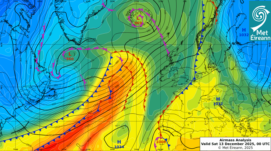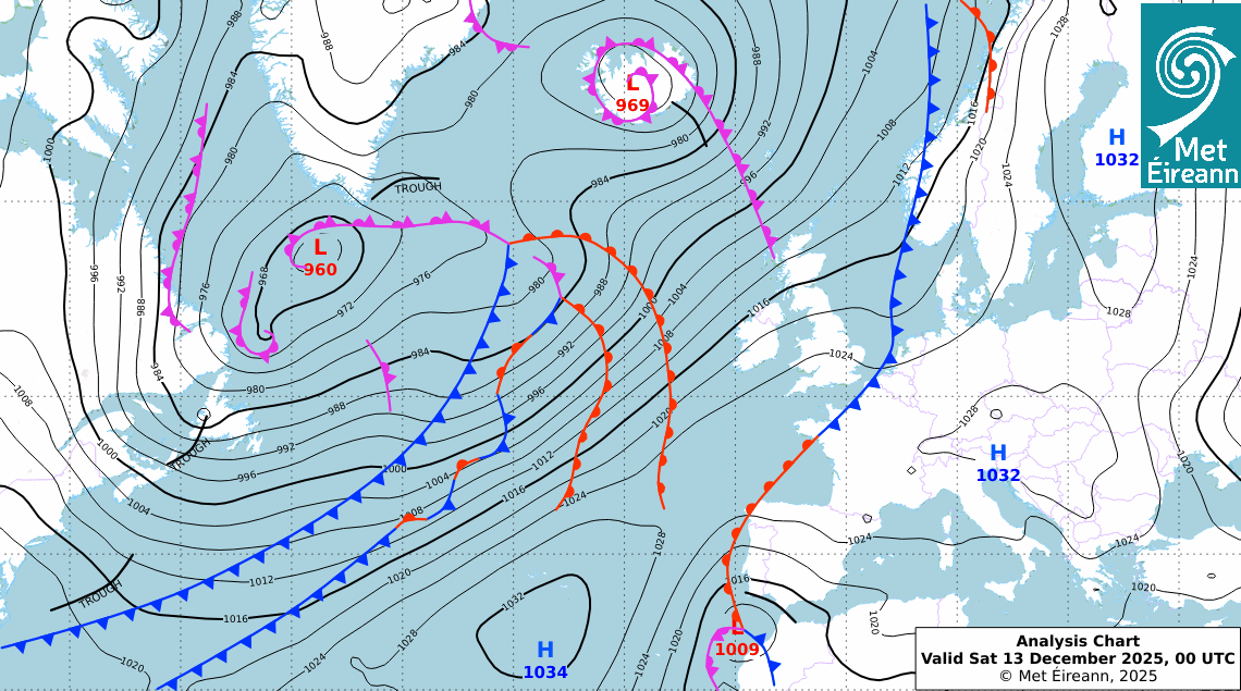 Surface Pressure & Frontal Analysis at 00UTC Dé Sathairn 13 Nollaig 2025